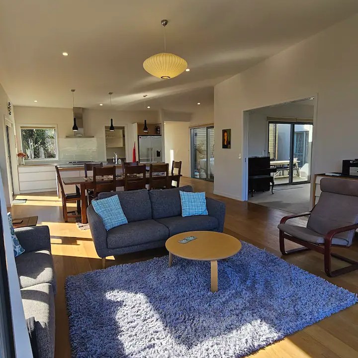 community pool access with pool, hot tub, gym, super king, 2x queens, 3 king single beds, solar panels, heat pumps, double glazed argon filled windows and extra thick walls, oiled hardwood floors and wool carpets create a very comfortable living space.